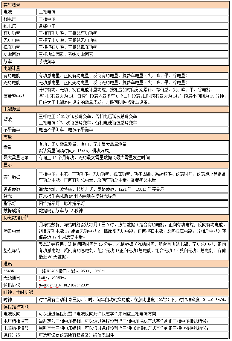各項技術指標符合《GB/T17215.321-2008》、《GB/T 17215.322-2008》、《DL/T645-2007》等國家標準以及行業標準。實現對不同區域和不同負荷的電能計量,統計和分析。