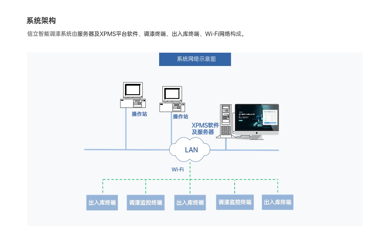 信立調漆管控系統XPMS,應用工業物聯網技術、數據庫及智能化平臺軟件,標準、規范、指導、監管調漆過程,實現調漆操作智能化、簡單化,有效提升調漆質量、減少漆料浪費,降低人為因素風險,是一套智能化的調漆、制漆管控系統。