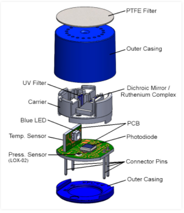 LOX-02熒光氧傳感器的一個(gè)關(guān)鍵優(yōu)勢是,該技術(shù)不含鉛成分,暴露在氧氣中不會耗盡熒光染料。