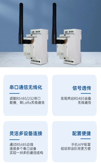 選擇XL6666串口無線轉換模塊,接入控制儀表、變頻器等設備的RS485/232接口,讀取所需數據,無線傳輸至網關節點。選擇XL90物聯網關,作為無線接收端,轉發數據。
